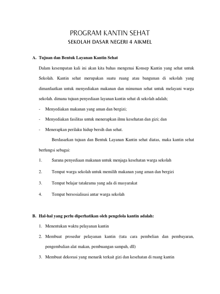 . Program Kerja Kantin Sekolah dan Koperasi Siswa ini kami bagikan untuk pengelola di Sekolah baik tingkat. Contoh Program Kantin Sehat Sekolah Dasar. At Jumat September 15 2017.