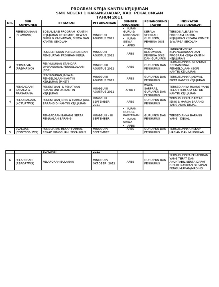 Program Kerja Kantin Kejujuran Smk 1 Karangdadap Kab Pkl Pdf